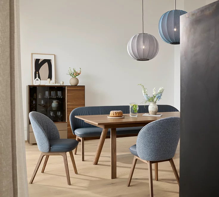 Das Esszimmer ist der Ort der Zusammenkunft, des Austauschs, der gemeinsamen Mahlzeiten und des Genusses. Umso wichtiger ist es, dass dieser Raum eine wohlige Atmosphäre ausstrahlt und stilvoll gestaltet ist.