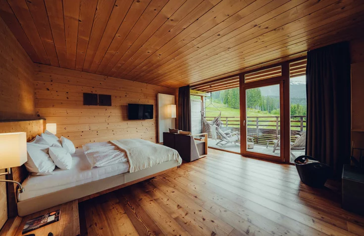 Hideaway auf 1050 Metern Höhe: Eingebettet in eine atemberaubende Alpenkulisse und umgeben von Almwiesen und Wäldern liegt das Hotel Forsthofalm. Der innovative Holzbau ist ein Statement in Sachen nachhaltiger Architektur und verbindet traditionelle alpine Ästhetik mit Dynamik und Modernität. Gemeinsam mit der Leoganger W2 Manufaktur hat TEAM 7 die exklusive Panorama Suite gestaltet.