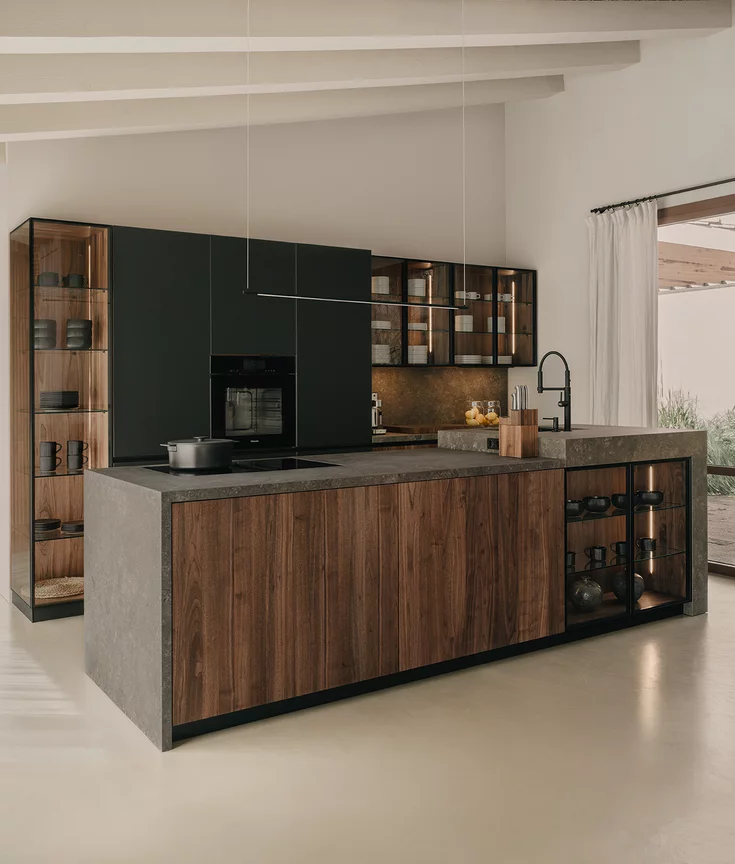 Glas schafft mit kühler Eleganz einen herrlichen Kontrast zur Wärme von echtem Holz.