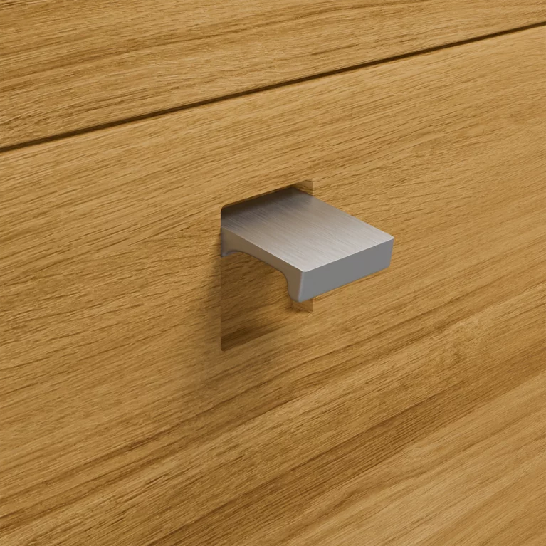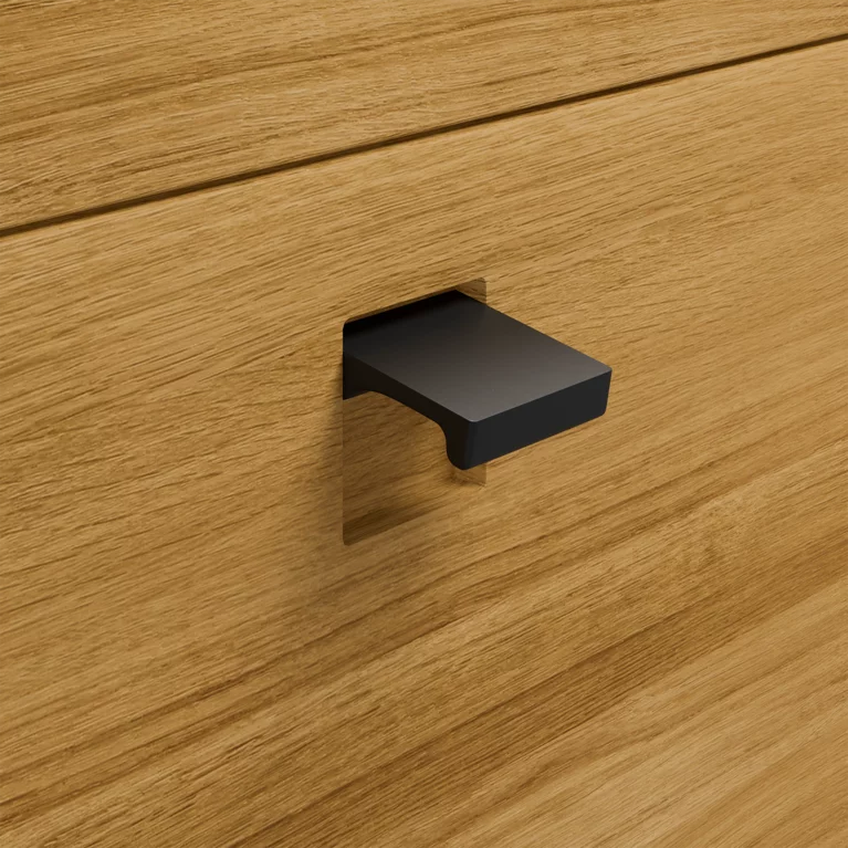 The harmonious junction between the top board and element sides, which come together in an artistic S shape, is characteristic of our nox bedside tables and dressers. Real wood, finished with pure natural oil and in the thickness typical for nox, will give your bedroom a cosy and comfortable feel. A flap handle flush-fitted into the elegant solid wood fronts with craftsmanlike precision, and taking nothing away from their natural aesthetic appeal, makes the generous drawers easy to open.